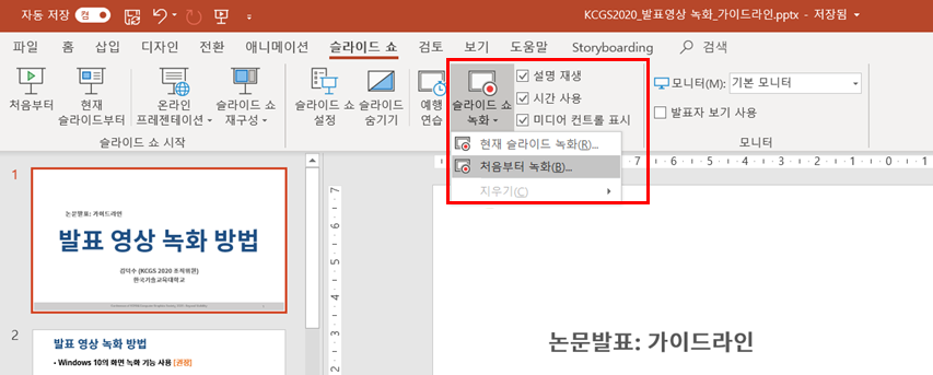 - 슬라이드 쇼 실행 : 녹화(화면) 및 녹음 동시 확인